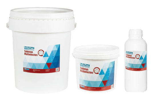 Tratamiento completo, potenciado en su fórmula para que actúe como desinfectante, Algicida, Bactericida, Floculante y Destructor de la materia orgánica, manteniendo el agua perfectamente sana, clara y transparente.